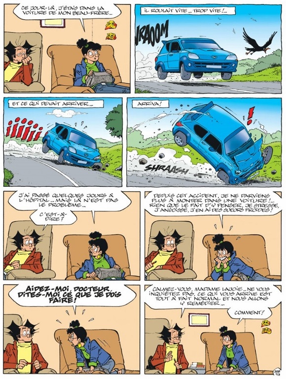 Gloire à Philippe Vandooren, directeur éditorial chez Dupuis, qui organisa la rencontre entre Bédu et le génial Raoul Cauvin. Après un court essai sur une série tournant autour des avocats, et ayant eu l’idée grâce aux experts psychiatriques présents dans les procès, Raoul Cauvin se dirigea rapidement vers les psys. Qui plus est, le principal lieu de travail du scénariste est son divan. Source de réflexion, catalyseur d’aventures et de gags, son divan devenait ainsi acteur de ses créations.
