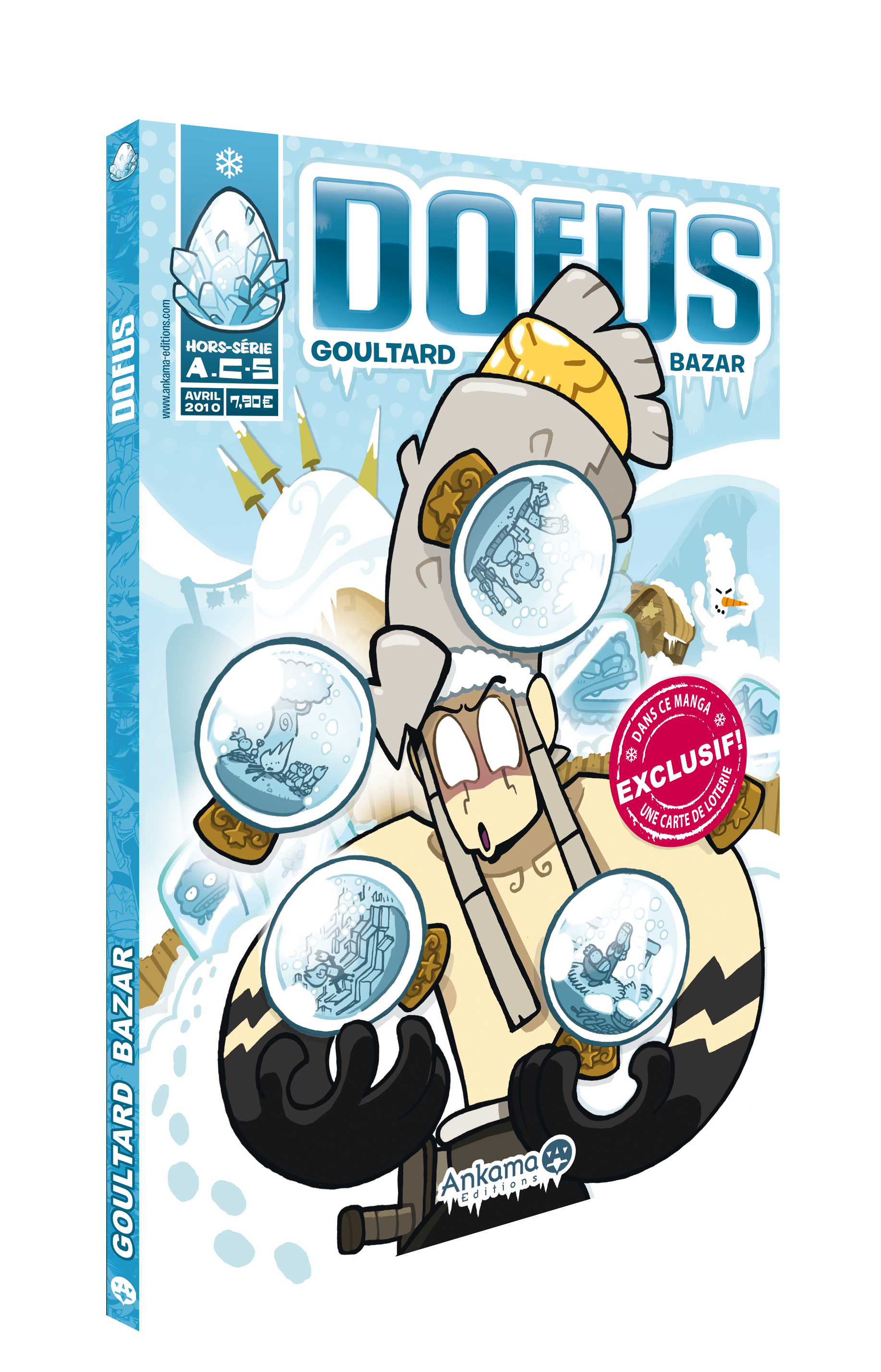 Avec le manga, le lecteur trouvera en cadeau une carte de loterie. Avec cette carte, le joueur de DOFUS 2.0 pourra se lancer dans une série de quêtes donnant accès à un cadeau dans le jeu : un objet pour son personnage, au choix parmi quatre. Le jeu dans « la vraie vie » Le joueur de DOFUS peut aussi venir faire ses quêtes IRL (in the real life) lors de la convention ANKAMA qui aura lieu les 17 et 18 avril à Paris. À la fn de chaque petite histoire du manga hors-série, le lecteur retrouvera une double page noire et blanc sur laquelle est prévu un emplacement pour un sticker en couleur. Pour compléter ces doubles pages, il lui faudra partir en quête des autocollants lors de la convention. Pour cela il doit participer à 5 épreuves ludiques et familiales. À chaque étape accomplie, le lecteur se verra remettre un