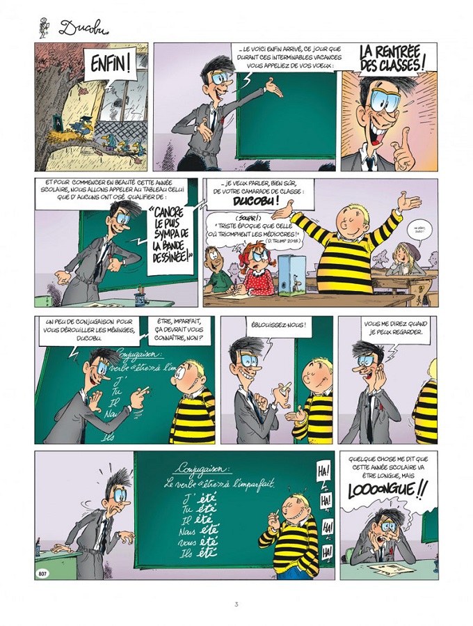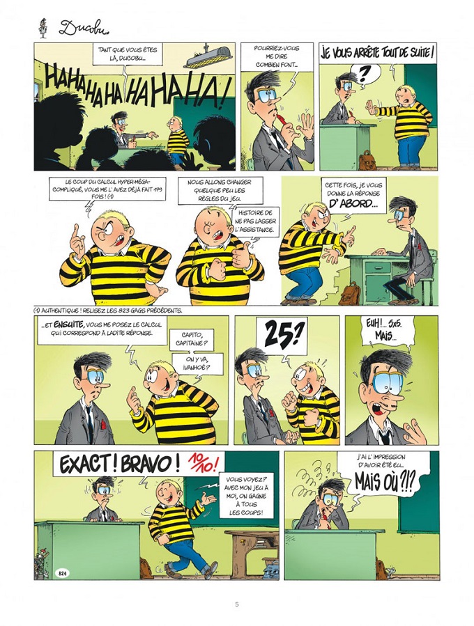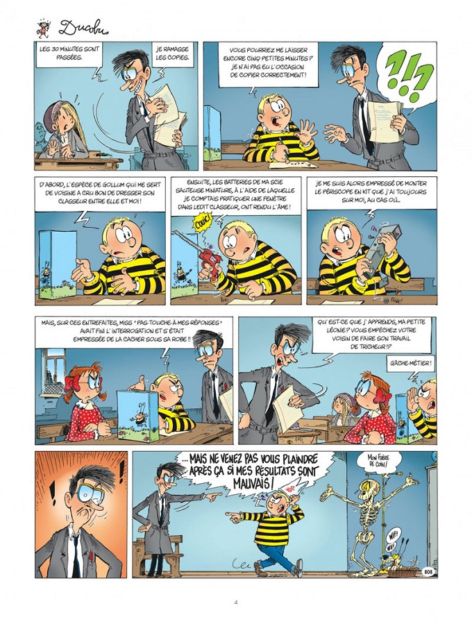 Ancien instit, Zidrou adresse des clins d’œil à ses ex-collègues. Un tacle sur le salaire des profs (de misère par rapport à leur travail) par ci, une avancée philosophique de Ducobu sur les méfaits des corrections en rouge par là. Il faut vraiment avoir été du métier pour arriver à faire encore rire sur un tel sujet au bout de 24 albums.