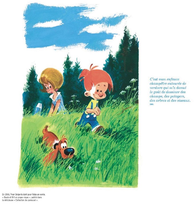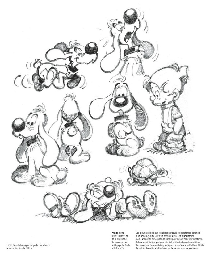 Comme la carrière de l’auteur, l’essentiel de l’ouvrage est consacré à Boule et Bill, depuis le mini-récit Boule contre les mini-requins jusqu’à son succès monumental. En privilégiant la vie quotidienne à l’aventure exotique, Roba offre une leçon de philosophie de vie. Pourquoi vouloir décrocher la lune pour atteindre le bonheur alors qu’on peut le trouver chez soi ? Cet auteur a inventé la feel good BD.