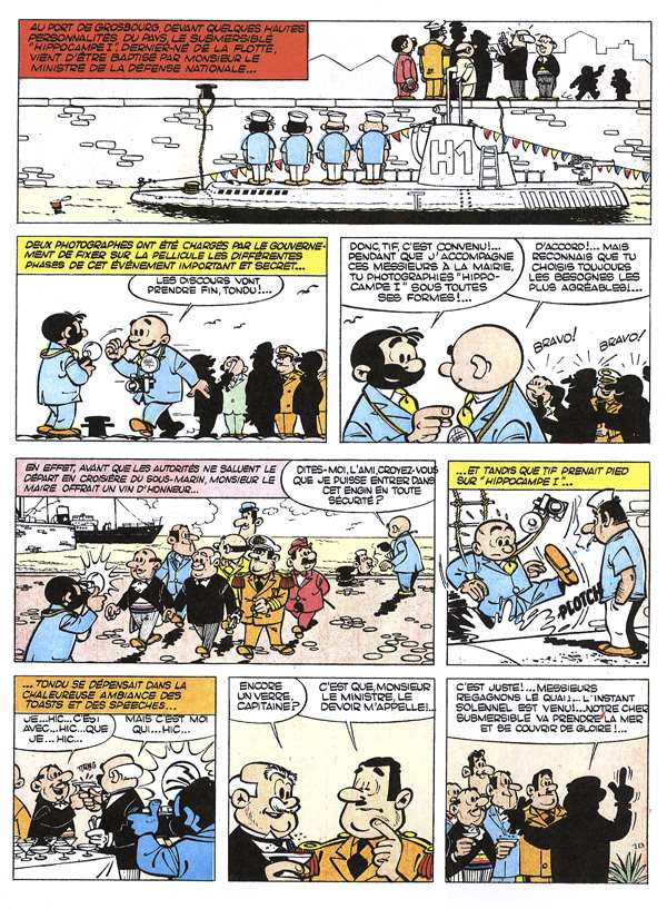 Ne tirez pas sur « Hippocampe » ! Et pour cause, comme le clame le titre de cette deuxième aventure, Tif est coincé à l’intérieur, aux mains d’une bande de terroristes qui se sont emparés de ce sous-marin. Tondu arrivera-t-il à sortir son alter ego des griffes des malfrats ?