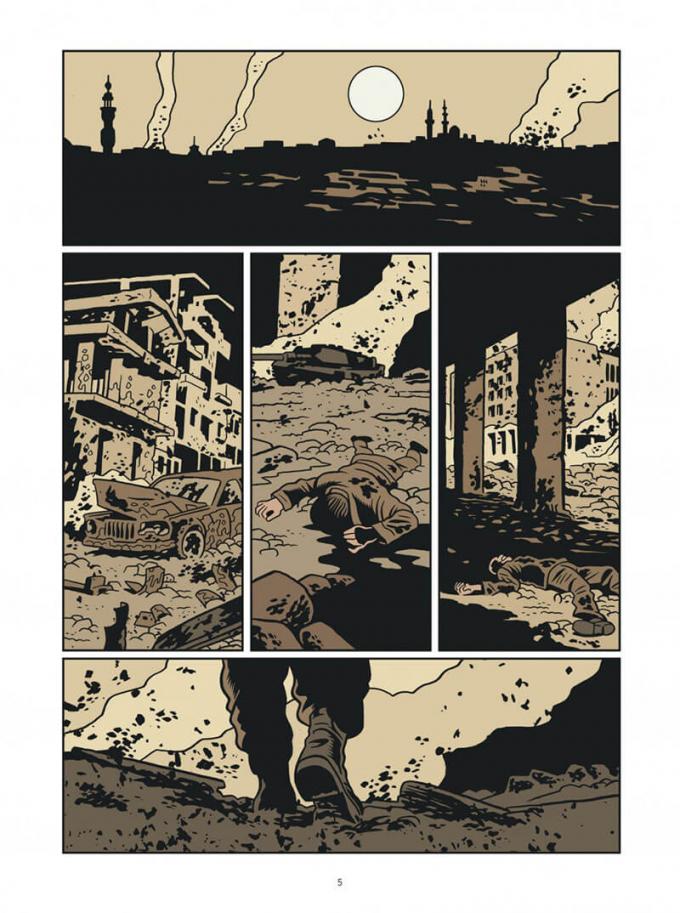 Cet album est disponible en deux versions, une colorisée par Laurence Croix dans une ambiance guerre d’Irak ramenée en Amérique, une autre en noir et blanc permettant d’apprécier au mieux l’épaisseur volontairement plate du dessinateur.
