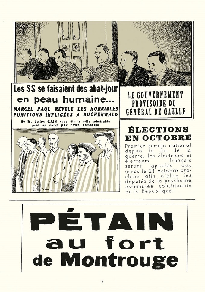 Sébastien Vassant illustre en monochromie sépia ce procès, s’attardant plus particulièrement sur les expressions des visages des orateurs défilant à la barre. Les grands journalistes tel Joseph Kessel mais aussi l’écrivain Albert Camus sont mis en avant à travers leurs prises de position dans les différents éditoriaux de l’époque.