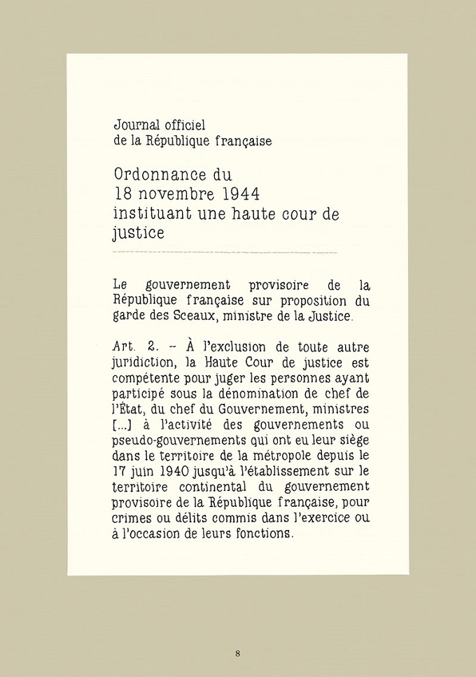 Paris, 23 juillet 1945. Un an après la libération de la capitale par les troupes du Général Leclerc s’ouvre le procès le plus retentissant du XXe siècle. Le procès d’un vieux monsieur de 89 ans, que l’on dit sénile et dont on a du mal à croire qu’il fut au départ le sauveur de la République pour mener vingt-deux années plus tard à la collaboration avec le 3e Reich.