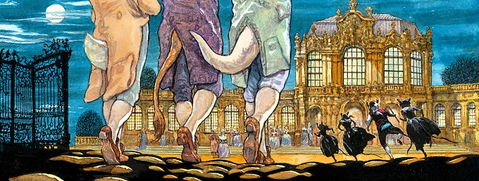 Les animaux représentant les personnages sont finement choisis en fonction de leurs caractères. Le « zoo » de la cour du roi est une faune en folie qui aurait pu figurer dans le film de 1984.