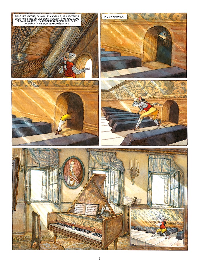 Alors que Ligo, le chat valet du loup, va devoir patienter avant de croquer le rongeur. En effet, le couple royal demande à Salieri de rejouer la mélodie pour l’anniversaire de la Reine. Il va donc falloir user de malice pour que le subterfuge fonctionne devant la cour.