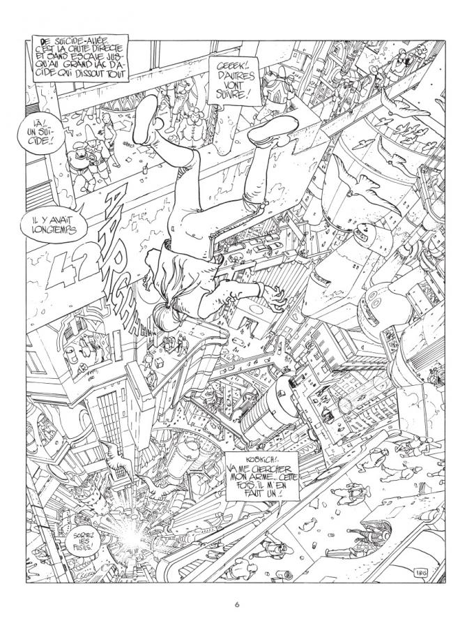 Cette intégrale en noir et blanc met en lumière le graphisme de Moëbius, qui, en parallèle à la rigueur et à l’exactitude d’un Jean Giraud, transpire la folie et la modernité.