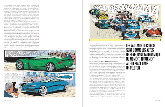 Richement illustré, documenté à l’extrême, reprenant de nombreux témoignages aussi bien d’auteurs BD que de pilotes (Alain Prost, Jean Alesi, Jacky Ickx évidemment !) ou de designers, cet ouvrage nous plonge dans l’épopée des Vaillantes !
