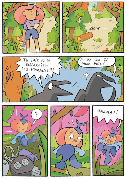 Le moins que l’on puisse dire, c’est que la petite Léonie n’est pas franchement ravie d’accompagner ses parents pour une balade en forêt. C’est beaucoup plus amusant de jouer au foot. Son papa lui propose de suivre le chemin balisé de son côté pour aller jouer les aventurières. Ils se retrouveront au parking. Agaçant les corbeaux, l’un d’eux, aux pouvoirs magiques, la métamorphose en scarabée. Voici Léonie réduite à l’état d’insecte à devoir cohabiter avec eux. Mordicus, Goliath, Berlia, Rhino et leurs amis vont l’accueillir à bras ouverts. Léonie va même apprendre à voler. Mais attention, à une taille de quelques millimètres, le danger est à la porte.